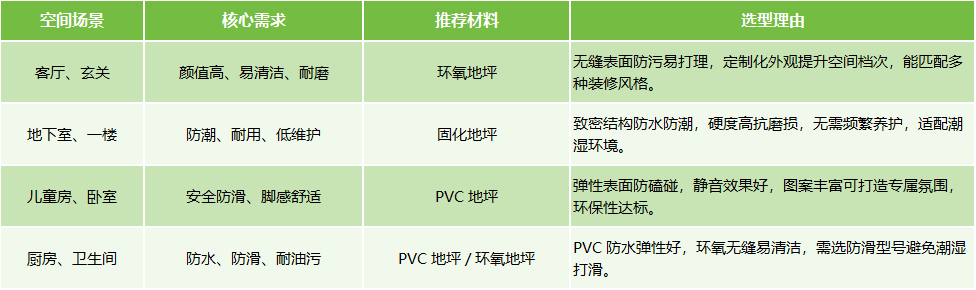 家装地面选择不仅关乎颜值,更影响日常居住的舒适度与实用性。瓷砖、木地板虽常见,但环氧、固化、PVC 这三种专业地坪材料,凭借定制化性能正成为家装新选择。它们或侧重颜值、或主打耐用、或擅长舒适,核心差异集中在风格适配、功能特性与空间需求的匹配度上。搞懂这三种材料的适用场景,就能让每个空间的地面都 “用得顺手、看得舒心”。