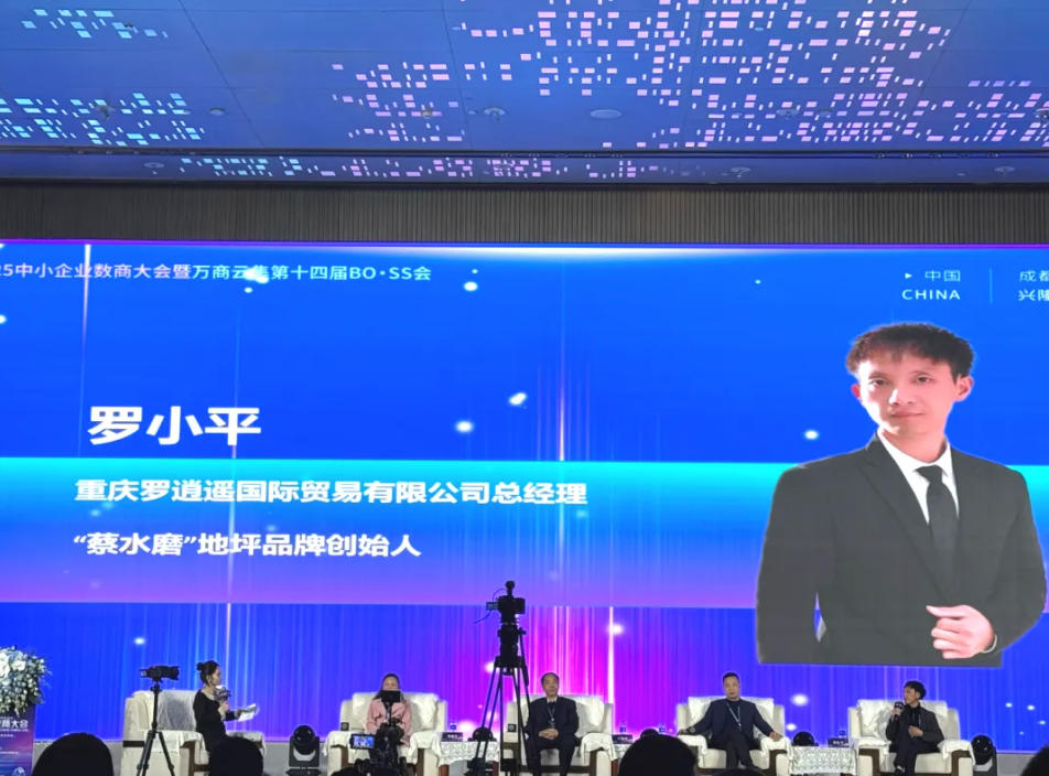 会议期间,重庆罗逍遥国 际贸易有限公司总经理罗小平作为建筑行业标杆企业代表亮相,分享了公司旗下品牌“蔡水磨”的由来,讲述了如何借助数字营销工具突破传统贸易局限,实现业务快速增长的成功案例。“数字化转型不是选择题,而是生存题。中小企业必须主动拥抱变化,将数字思维融入企业发展的每一个环节。”